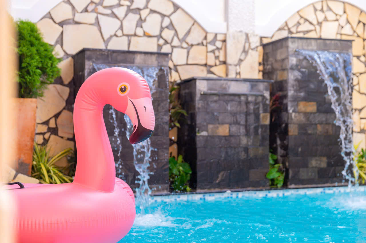 🌊Hồ bơi: 35 m2, Có 3 thác đảo nước tại hồ.