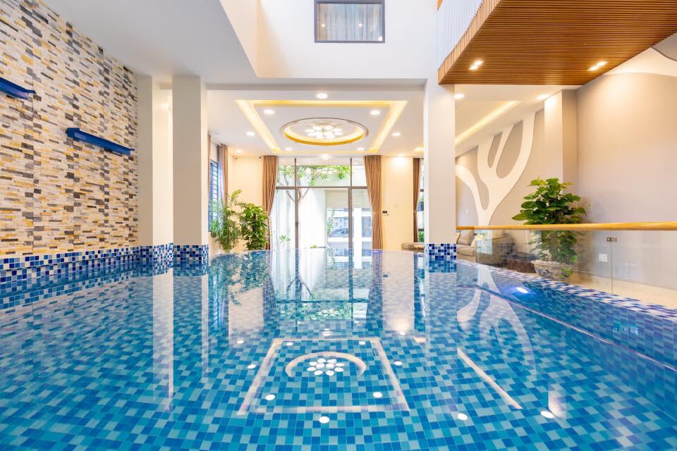 - Hồ bơi điện phân muối thiết kế trong nhà,